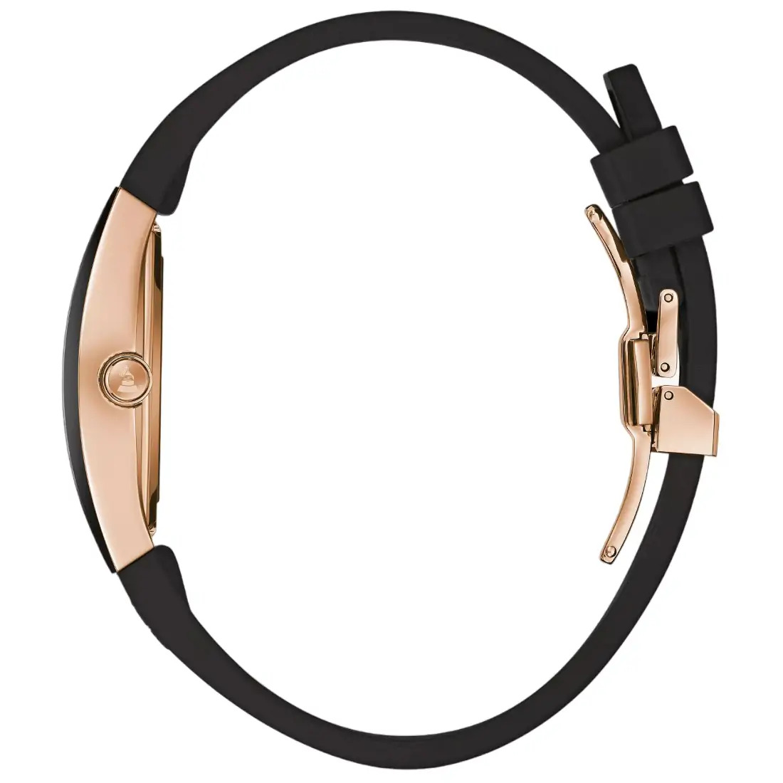 Reloj Bulova Edición Latin Grammy para caballero. Movimiento de cuarzo de 3 manecillas. Caja con moderno estilo tonneau realizada en acero inoxidable acabado PVD negro con detalles y corona en oro rosa. Carátula negra, indicadores y manecillas en oro rosa, logo de los Latin Grammy grabado en tapa y correa. Correa de caucho negra, broche desplegable. Cristal metalizado de borde a borde.