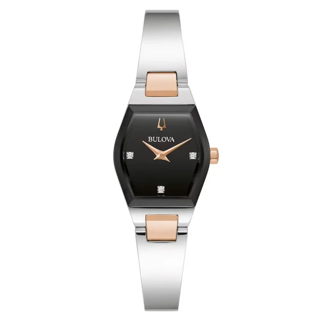 Negro con 3 diamantes montados de forma individual a mano Detalles en tono otro rosa
