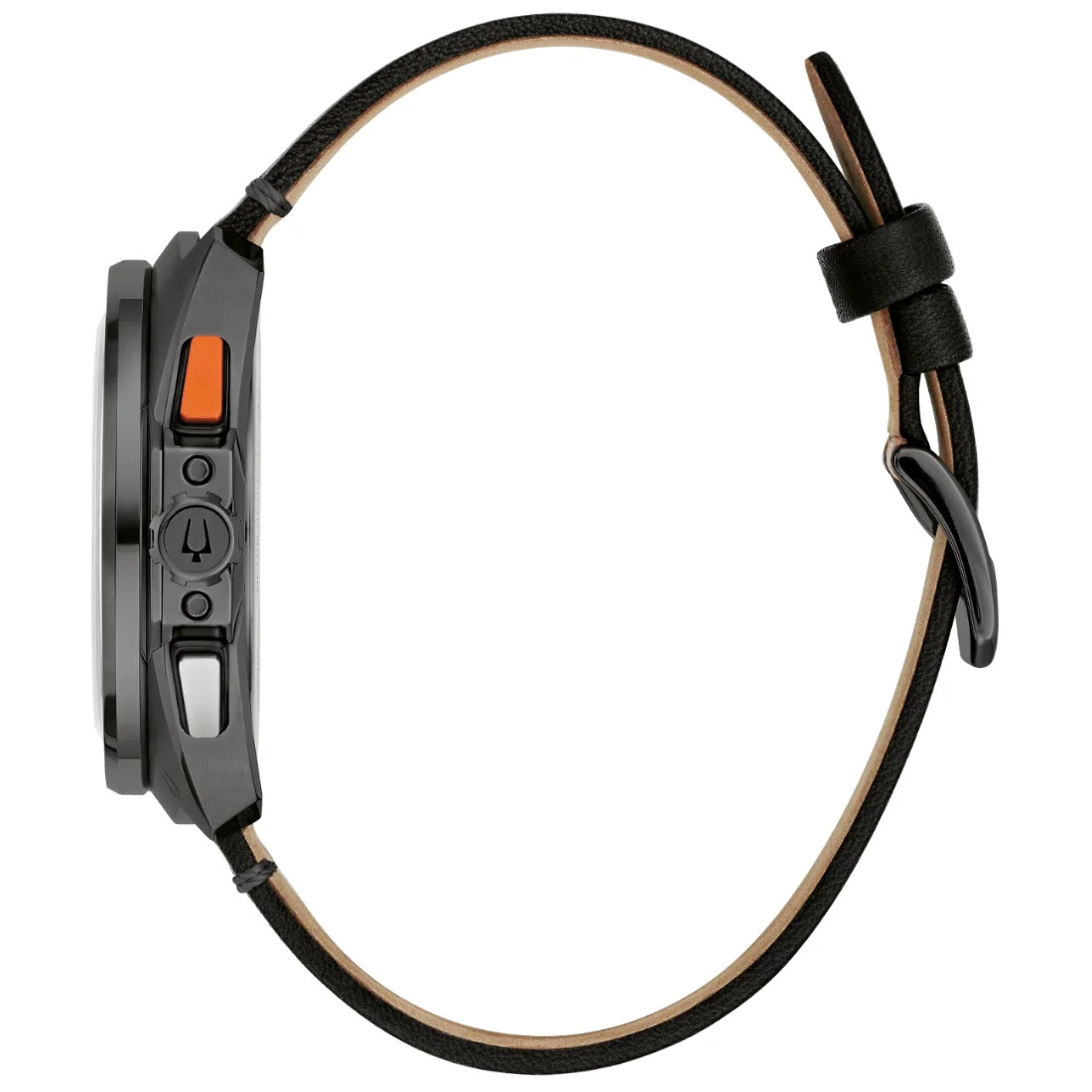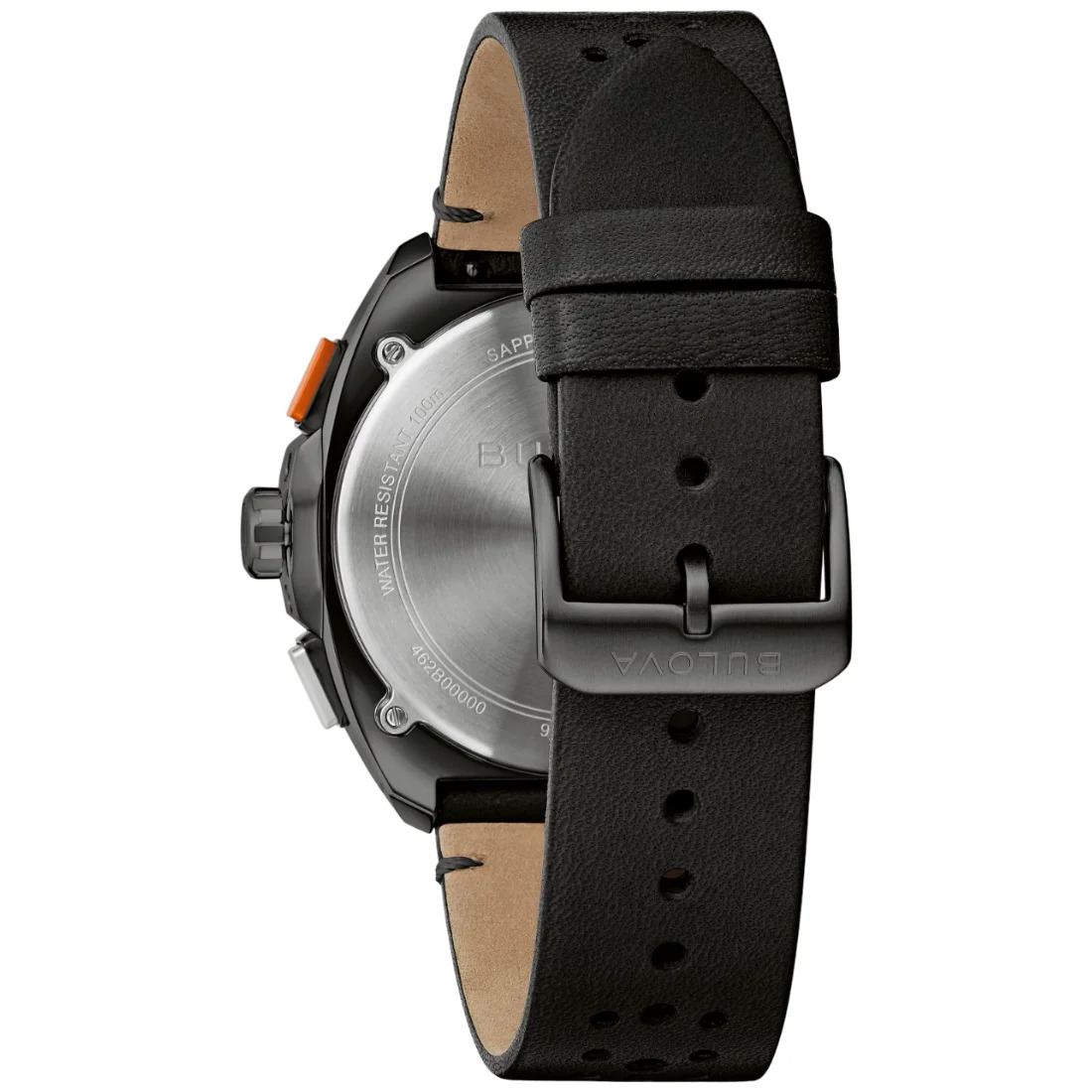 Reloj Bulova colección Racer para Caballero. Movimiento cronógrafo de cuarzo de 5 manecillas y fechador en posición de las 6Hrs. Caja realizada en acero inoxidable acabado PVD negro que asemeja las curvas aerodinámicas de los autos más veloces del mundo.