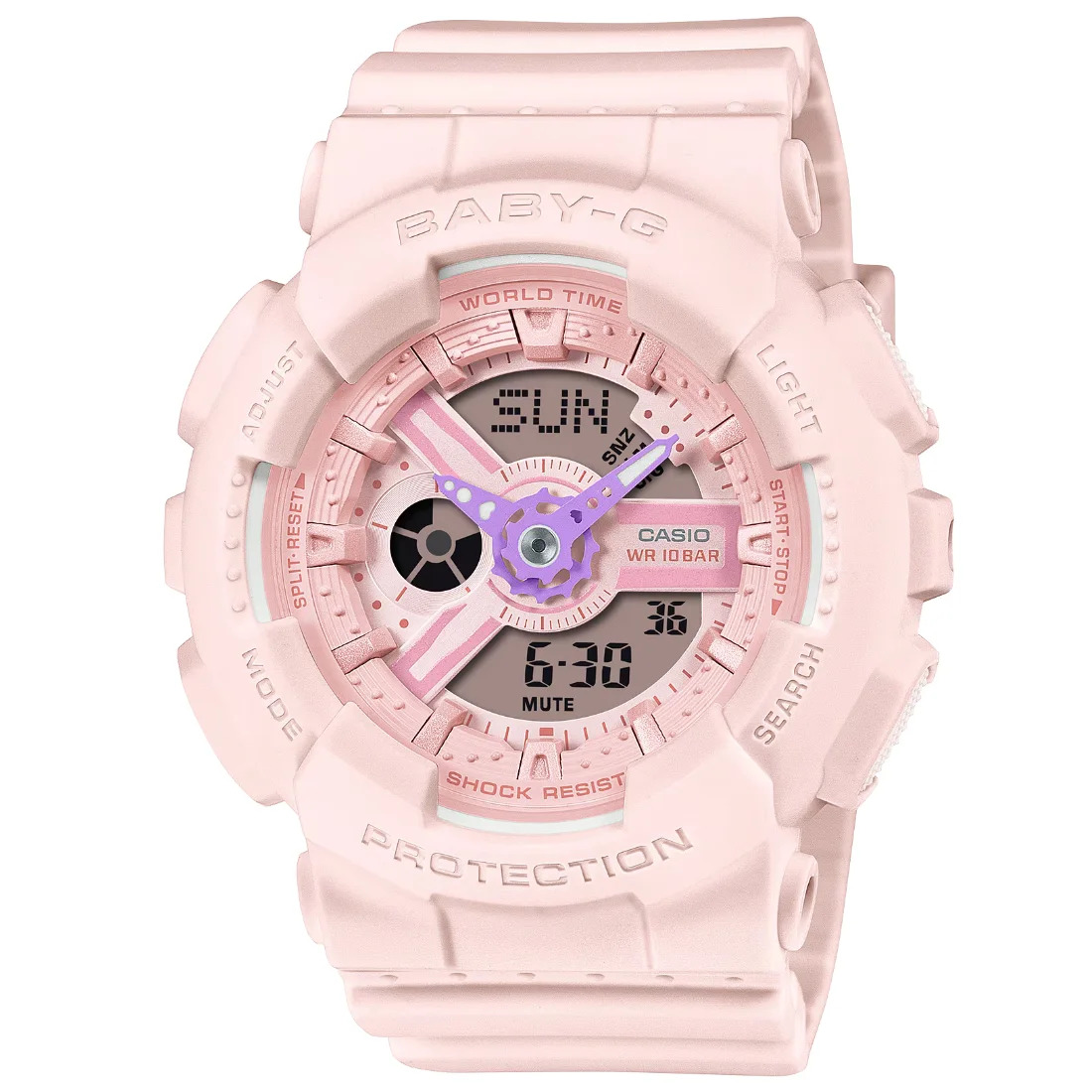 Suave y sutil_ pero audaz y elegante. Detallada combinaci¢n de dial_ ¡ndices y otros componentes en esquemas de color pastel suave. Los detalles en las manecillas del reloj agregan un toque de color intenso para lograr un contraste festivo que ilumina cualquier d¡a. M s que solo lujo y estilo_ estos relojes tambin ofrecen una estructura resistente a impactos_ resistencia al agua hasta 100 metros y m s. Ya sea deportes_ recreaci¢n o diversi¢n diaria_ estos relojes BABY-G lo mantienen activo en todo momento.