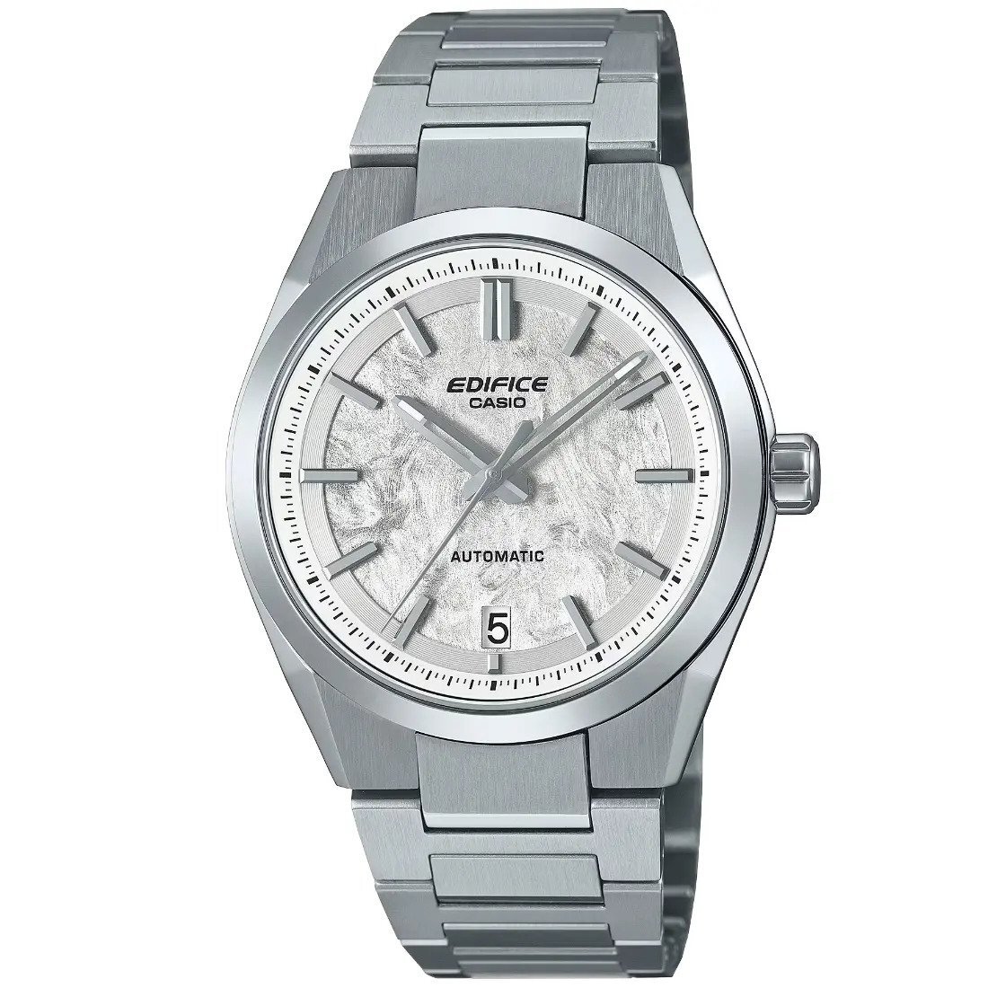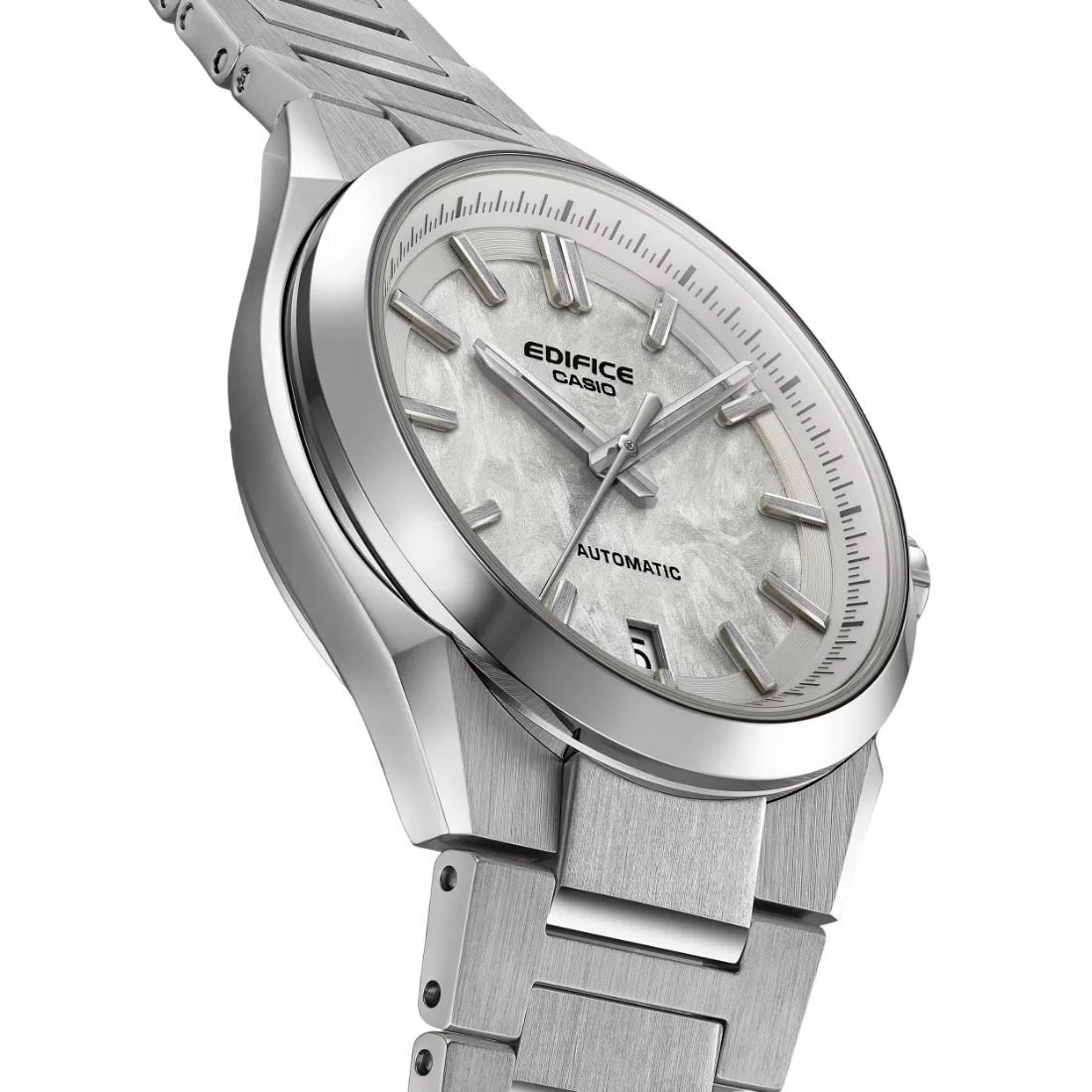Dise¤ado para aut‚nticos entusiastas de los deportivos: el EFK-100D es un reloj anal¢gico de tres agujas que encarna el esp¡ritu de EDIFICE_ donde la ingenier¡a relojera se une al mundo de los autom¢viles de alto rendimiento. La t‚cnica de electroforming reproduce en la esfera el aspecto del carbono forjado_ creando una textura £nica que combina deportividad y sofisticaci¢n. El cristal de zafiro mejora la visibilidad_ mientras que detalles din micos como los ¡ndices en relieve y el dise¤o afilado de la caja y el bisel completan una est‚tica refinada y potente.