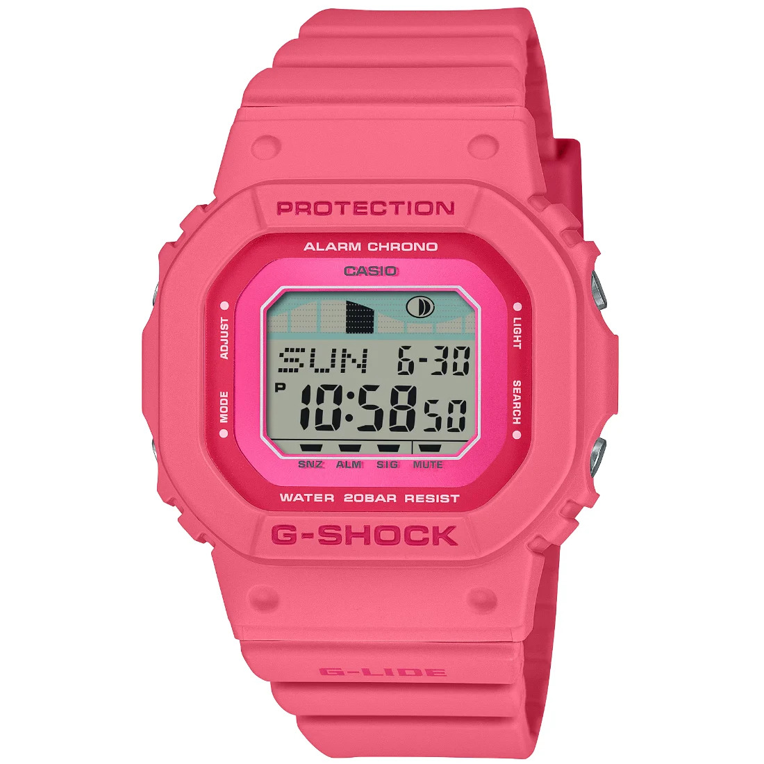 G-SHOCK GLIDE edici¢n Bettylou Sakura Johnson Inspiraci¢n hawaiana_ rendimiento profesional. Conoce la nueva G-SHOCK GLIDE_ una edici¢n especial inspirada en las flores tropicales de Haw i y dise¤ada en colaboraci¢n con Bettylou Sakura Johnson_ surfista profesional nacida en Oahu y miembro del Team G-SHOCK. Este reloj deportivo para surf combina estilo veraniego y funcionalidad avanzada_ con un dise¤o en tonos intensos: el rosa profundo de la flor de cerezo kanhi-zakura_ en honor al segundo nombre de Bettylou_.