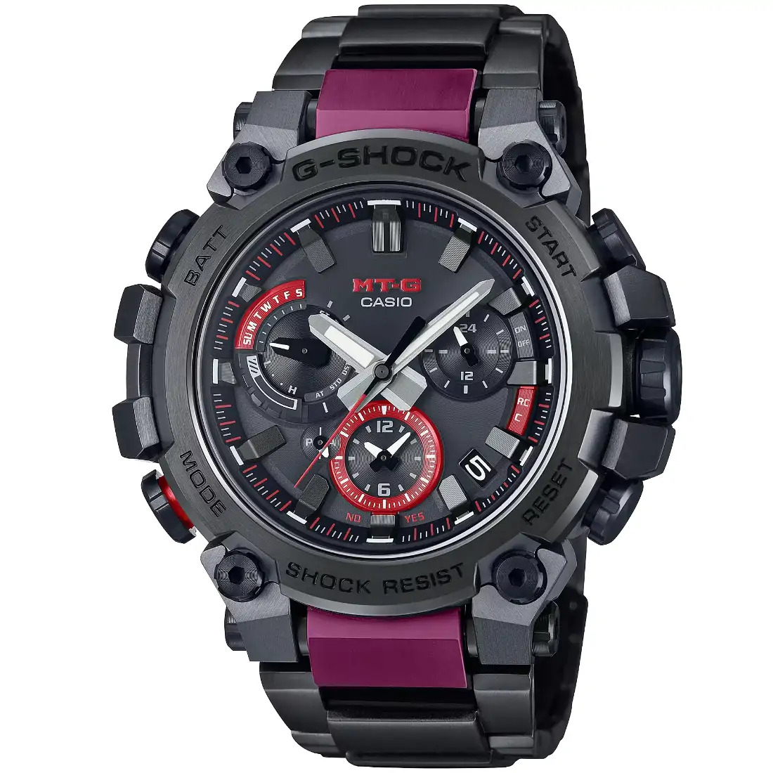 Descubra una forma innovadora de gran belleza estructural_ un reloj MT-G que naci¢ de un concepto de dise¤o completamente nuevo y que combina la resina utilizada en los primeros modelos G-SHOCK con materiales met licos. Bienvenido a un nuevo nivel de dise¤o estructural sofisticado. Con su estructura Dual Core Guard a£n m s avanzada_ el MTG-B3000 protege el m¢dulo en una carcasa de resina reforzada con carbono y recubre el exterior con componentes met licos.