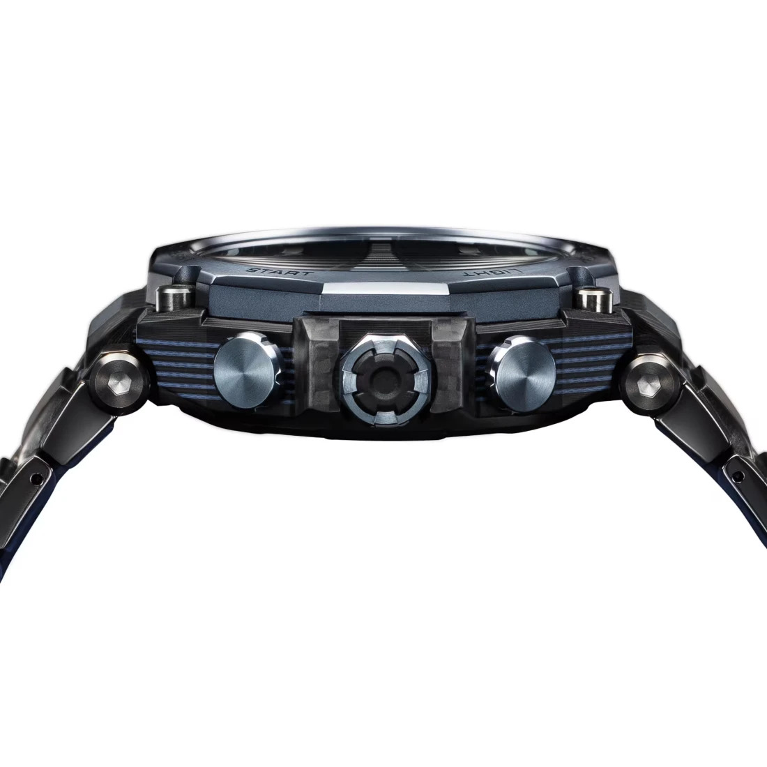 Descubra la forma innovadora y la belleza estructural: los relojes MT-G combinan materiales met licos con la resina utilizada en los primeros modelos G-SHOCK. El modelo MTG-B2000YBD cuenta con una estructura Dual Core Guard que protege el m¢dulo en un monocasco de carbono que integra la carcasa y la parte posterior. Rodeada de componentes met licos exteriores_ esta innovadora estructura ofrece un peso m s ligero y una mayor durabilidad. El bisel y los botones superiores de acero inoxidable tienen un acabado de ba¤o de iones gris azulado contra una base negra para una sofisticaci¢n de dos tonos. La correa compuesta en capas intercambiables vuelve al reloj m s liviano y_ al mismo tiempo_ agrega un atractivo de textura especial.