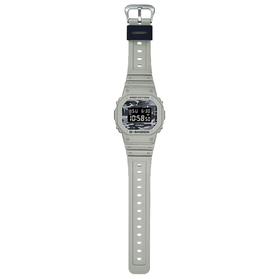 Un reloj que lo acompa¤a desde las actividades al aire libre hasta los interiores de la ciudad_ en colores adecuados que se adaptan a cualquier lugar. Con un motivo original de camuflaje G-SHOCK en la esfera.