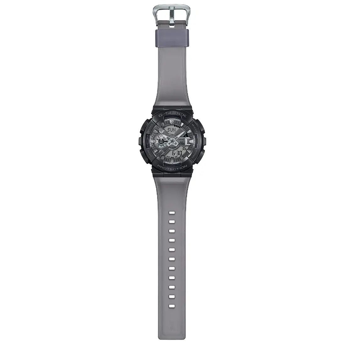 Entre a un mundo de niebla de medianoche con relojes en tonos sofisticados y relucientes. Los componentes met licos est n perfeccionados y terminados en color con ba¤o de iones a fin de brindar una sensaci¢n mate potente_ mientras que la correa y la carcasa tienen tonos de colores complementarios para agregar un toque de contraste equilibrado. Las correas transl£cidas en tonos neutros apagados se desvanecen casi sin color_ lo que evoca la calidad etrea de una niebla nocturna. n n