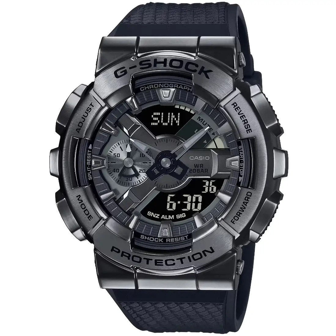 Utilice metal en negro con un G-SHOCK que transmite fuerza_ firmeza y elegancia. El marco de metal_ con un acabado de ba¤o de iones negro_ expresa de forma elegante y con estilo su sentido del dise¤o. Elija entre el GM-2100 con el popular marco octagonal o el GM-110 con su carcasa redonda de gran tama¤o. En cualquiera de los dos casos_ obtendr  una expresi¢n de moda totalmente en negro con una sensaci¢n de lujo y un aspecto vers til. Listo para ir donde quiera.