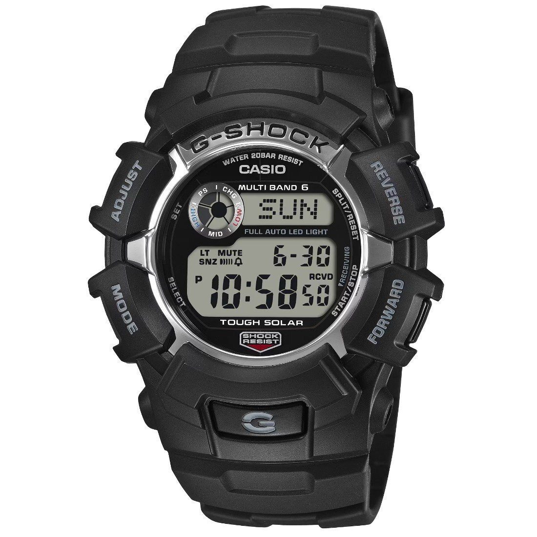 G-SHOCK GW-2310U es un reloj resistente y confiable, diseñado para acompañarte en la vida diaria con el máximo rendimiento. Incorpora tecnología Multiband 6, que recibe señales horarias por radio de seis estaciones alrededor del mundo, garantizando una hora automática y precisa en todo momento. Ideal para quienes buscan un reloj G-SHOCK duradero, funcional y preciso, el GW-2310U combina tecnología avanzada, resistencia y diseño atemporal en un solo reloj.