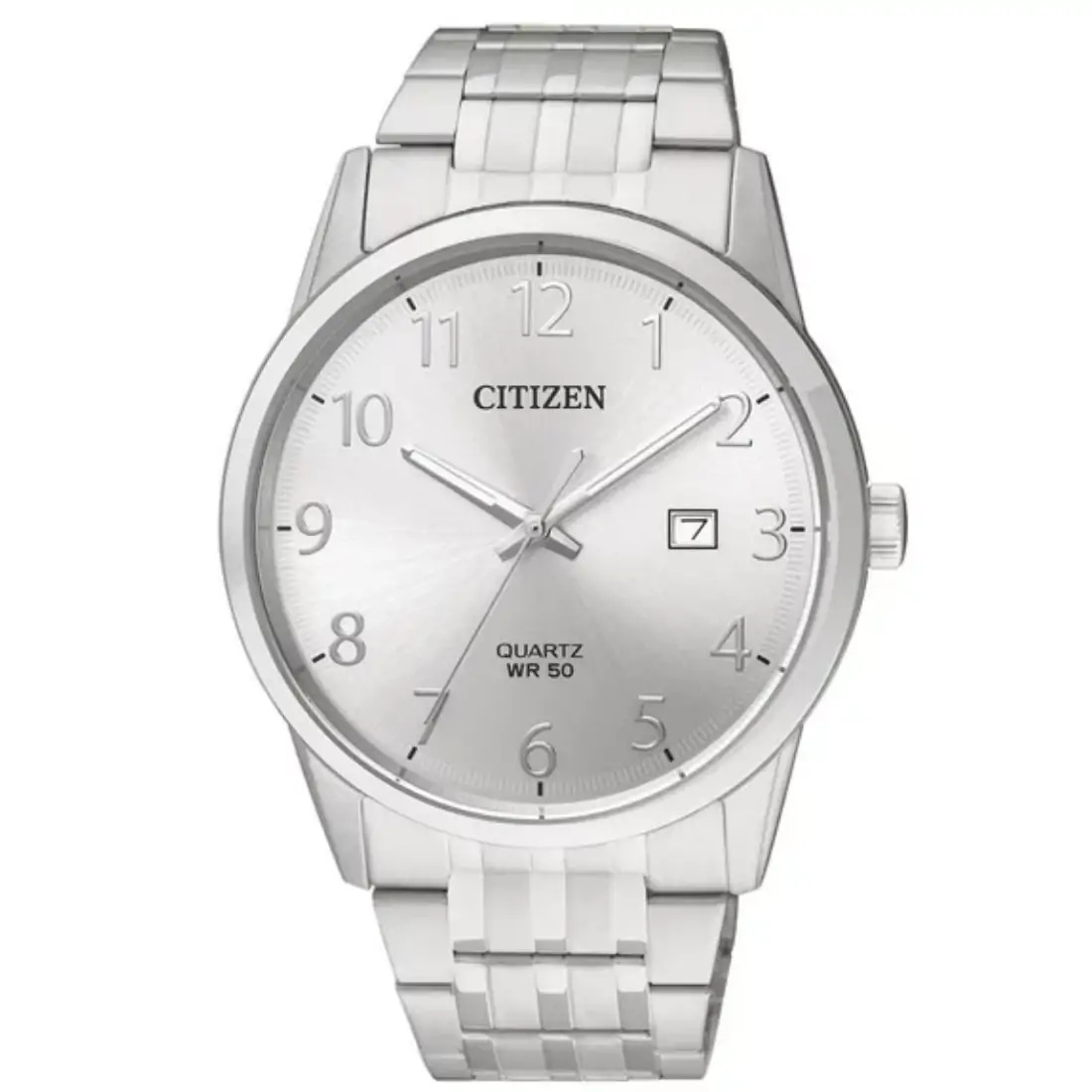Reloj CITIZEN para caballero con movimiento de cuarzo. Luce una caja y brazalete de acero inoxidable plateado que contrastan con la car tula plateada.