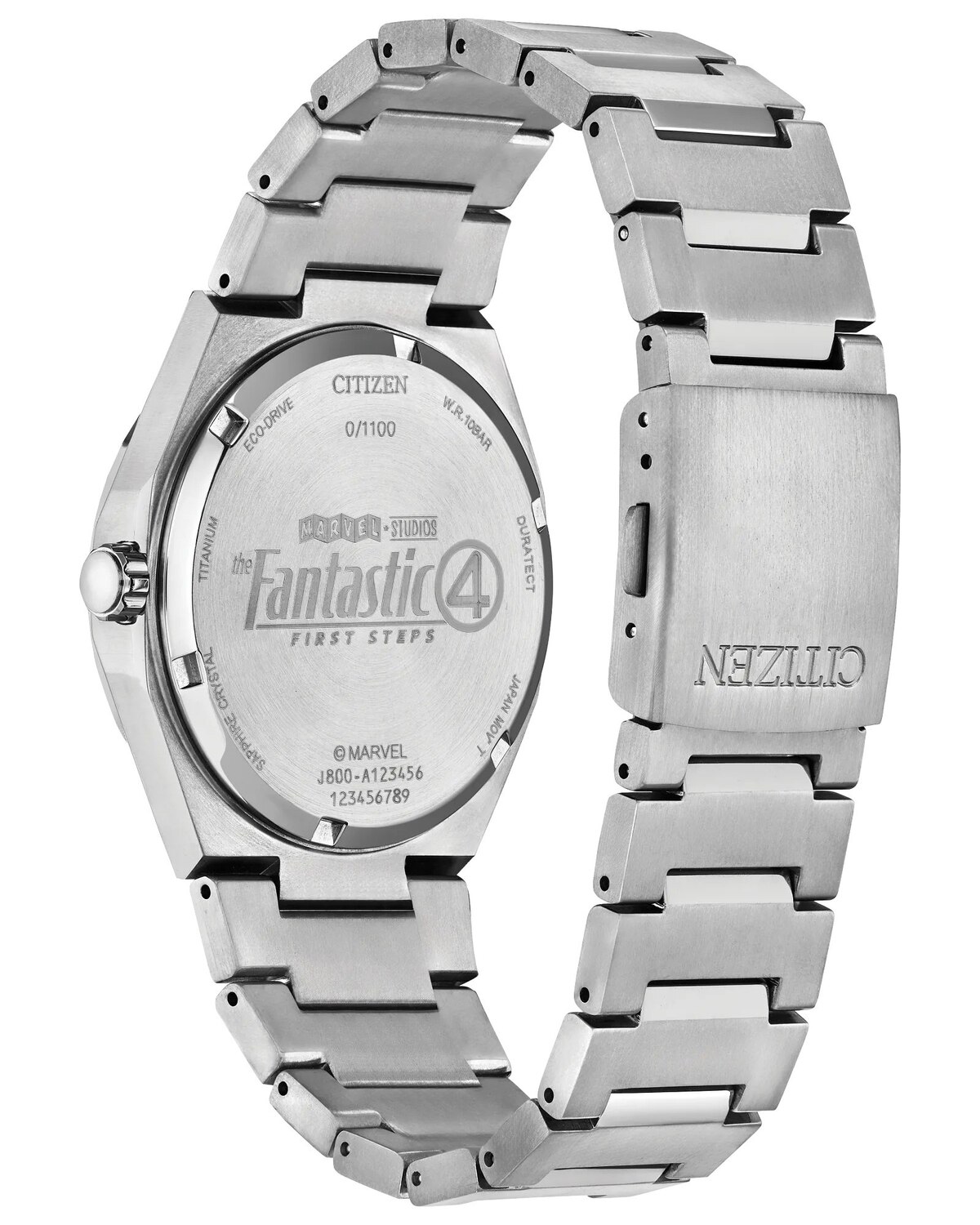 El legendario grupo de superh‚roes_ los 4 Fant sticos_ desarroll¢ sus superpoderes tras exponerse a rayos c¢smicos en el espacio exterior. Este nuevo reloj de Edici¢n Limitada rinde homenaje al Se¤or Fant stico_ la Mujer Invisible_ la Antorcha Humana y La Mole con una impresionante car tula azul y un patr¢n de cepillado vertical_ ¡ndices luminiscentes blancos y un indicador ondulado a las 12 en punto que simboliza la capacidad de Reed Richards para estirar su cuerpo y adoptar formas incre¡bles. La caja trasera presenta el llamativo logotipo del equipo_ que se repite en el pin coleccionable que acompa¤a a este boxset. ¨Y qu‚ hace que este reloj sea a£n m s potente? La caja y el brazalete plateados Zenshin est n fabricados con Super Titanium?_ un material exclusivo de Citizen que es cinco veces m s duro y un 40 % m s ligero que el acero inoxidable_ adem s de ser hipoalerg‚nico y resistente a los raspones y al ¢xido. Alimentado de forma sostenible por cualquier fuente de luz gracias a la tecnolog¡a Eco-Drive de Citizen_ este reloj nunca necesita cambio de bater¡a. ¸ 2025 MARVEL.
