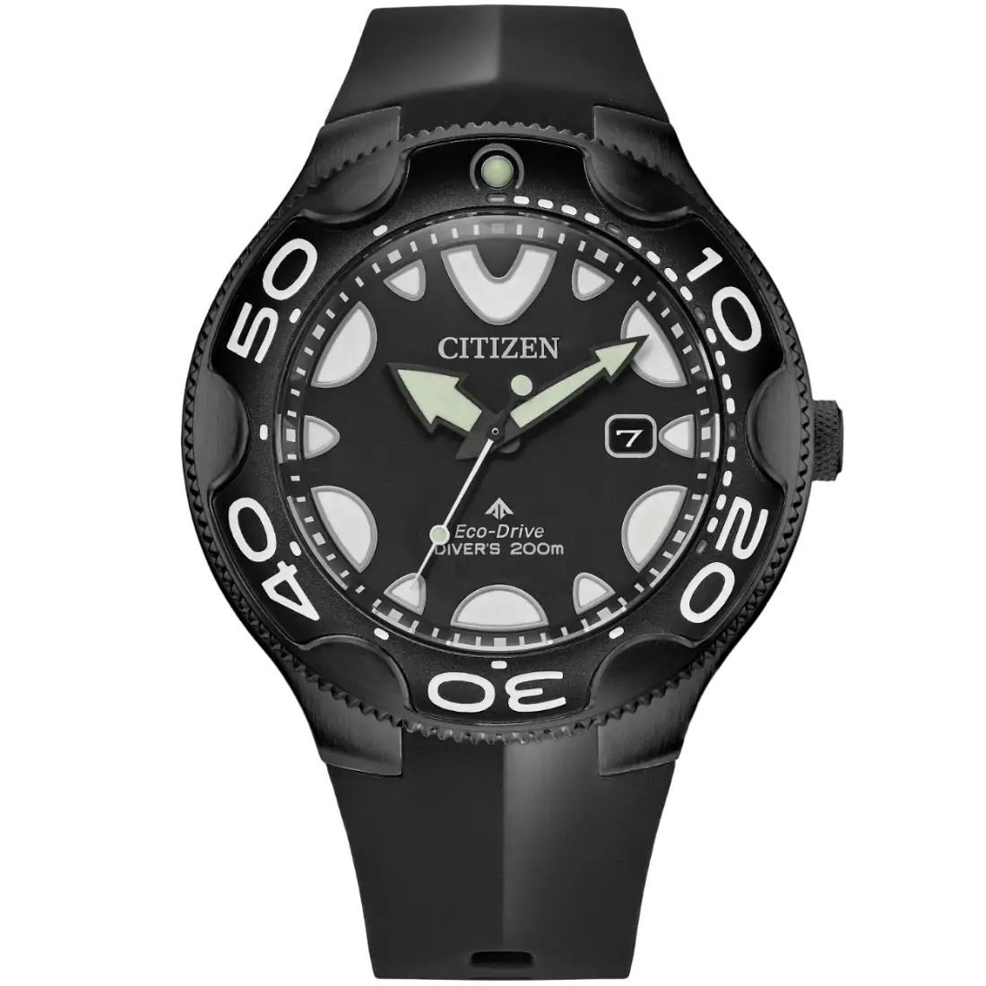 Domina al mar con estilo gracias al Promaster Dive. Este ic¢nico reloj para caballero de CITIZEN© de la colecci¢n Promaster Sea tiene un sorprendente dise¤o original inspirado en la majestuosa orca. Altamente funcional y deportiva_ esta pieza luce una caja de acero inoxidable negra cuya car tula destaca por su color negra e indicadores el¡pticos en color blanco_ con 3 manecillas y fechador. Las muescas en el bisel evocan a la forma de la orca_ as¡ como los toques de color en el marcador de las 12 y la manecilla de los minutos.