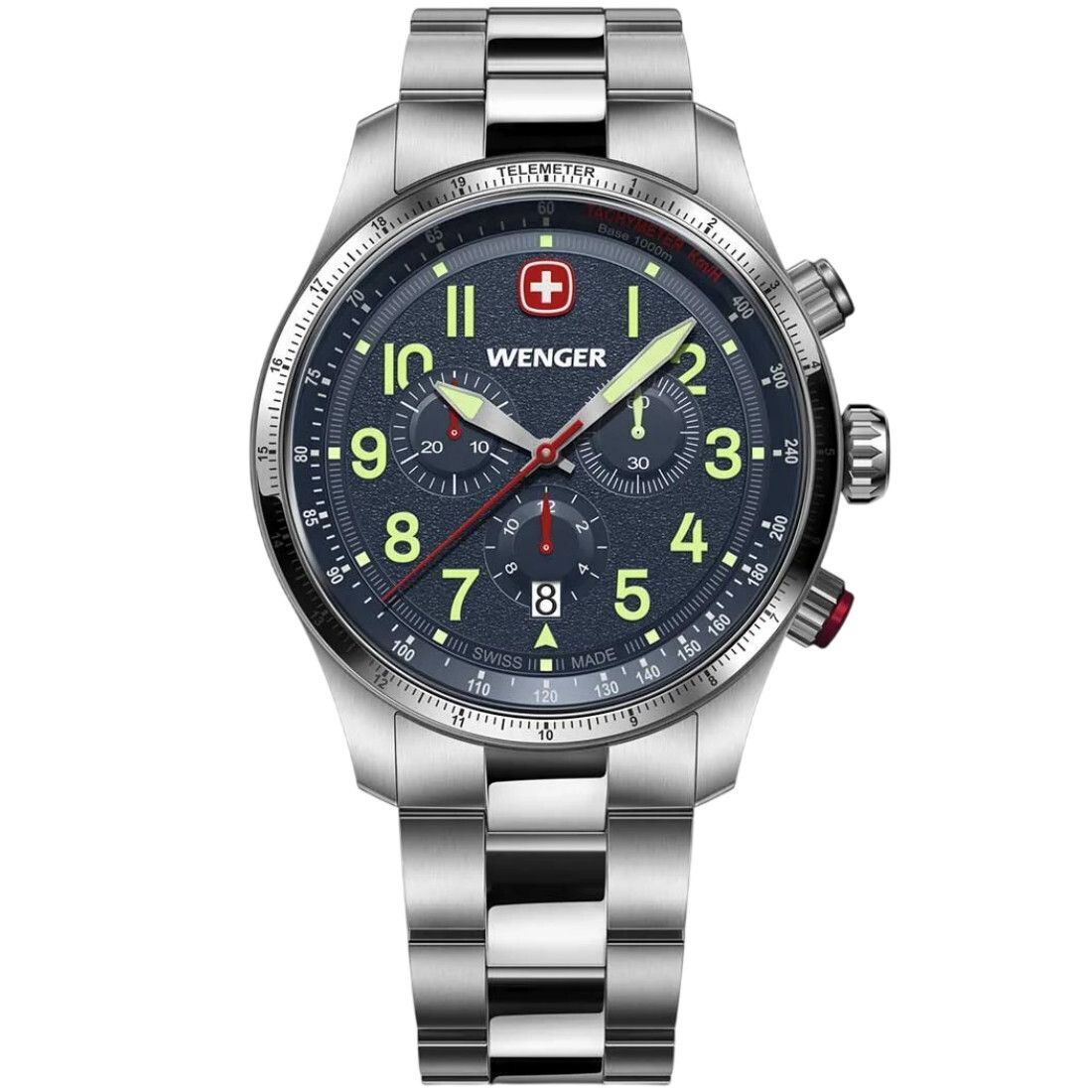 Cristal mineral con revestimiento de zafiro, Cronógrafo, Fecha, Material luminiscente en la esfera y en las manecillas de minutos y horas, Tapa de caja atornillada
